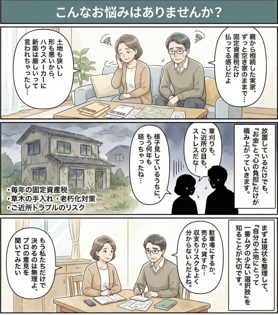 「固定資産税だけ払っている空き地」「親から相続した使い道のない実家」