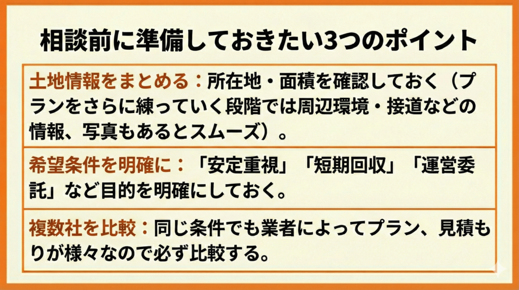 相談前に準備しておきたい3つのポイント