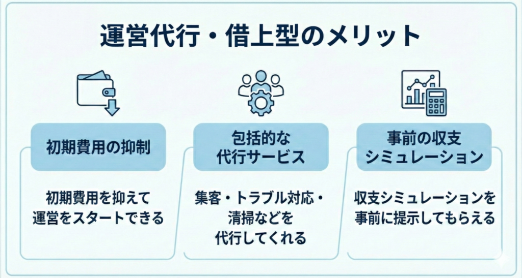そこで頼りになるのが、運営を一括で任せられる管理会社(運営代行・借上型)です。